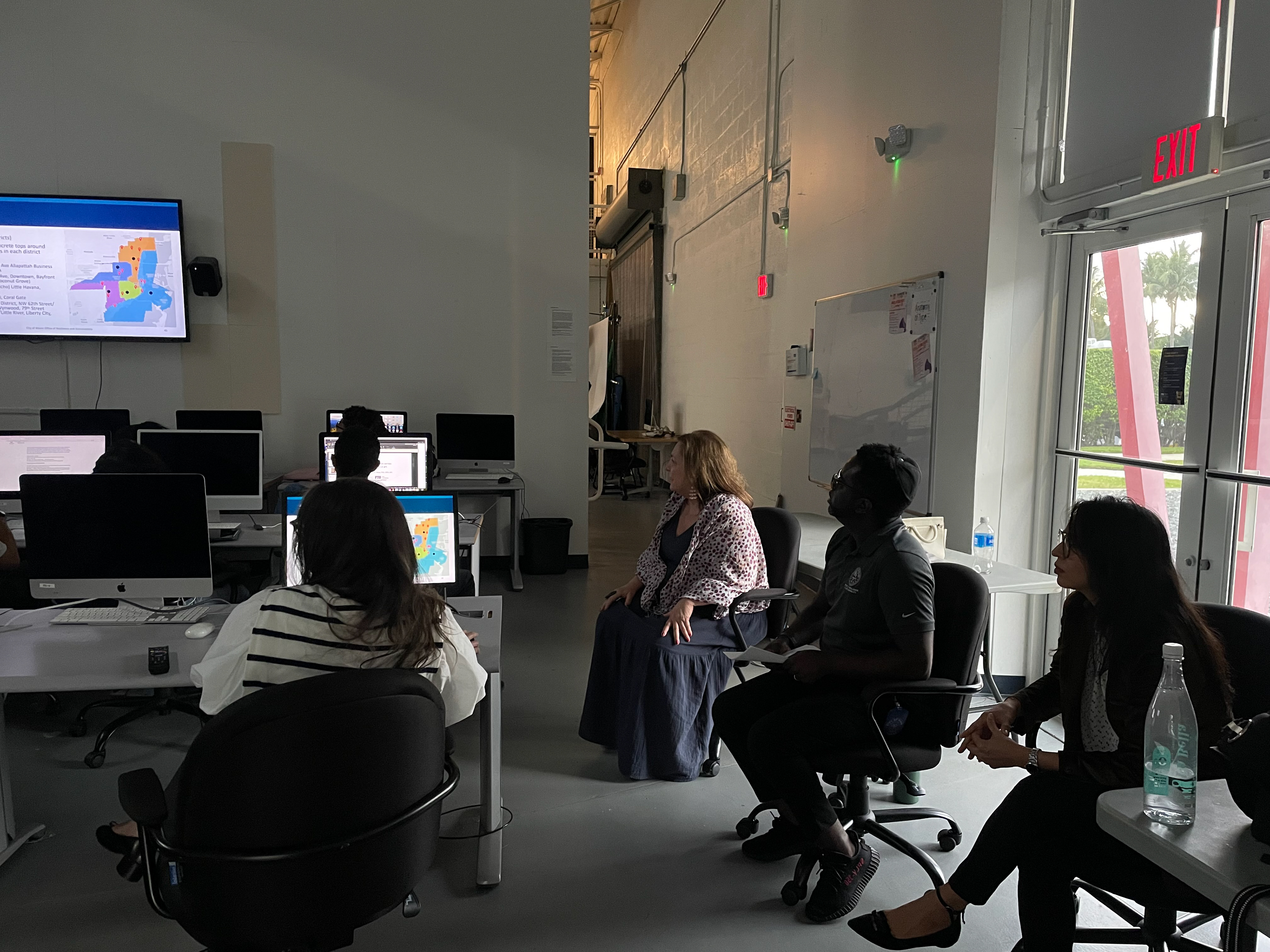 Dr. Timothy Ostemberg from the City’s Resilience team, delivered guest lectures to Florida International University (FIU) Design and Art students. The presentation, hosted within a digital arts graphic design class (GRA4818 AS115), offered insights into the intersection of public art, urban planning, and community resilience. The sessions were followed by an in-depth lecture by Dr. Silvia Pease, further expanding on themes of design and civic engagement. Following the lectures, students began the initial phases of research and development, generating three conceptual proposals in response to the themes presented.